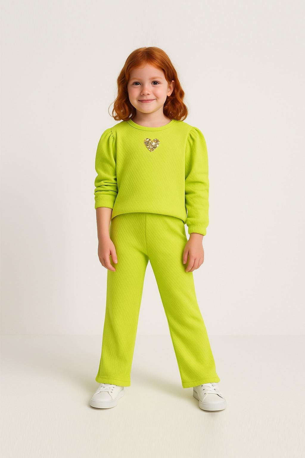 Kız Çocuk %100 Pamuklu Kalp Payet Detaylı  Alt Üst Takım (3-4 Yaş 8-9 Yaş)