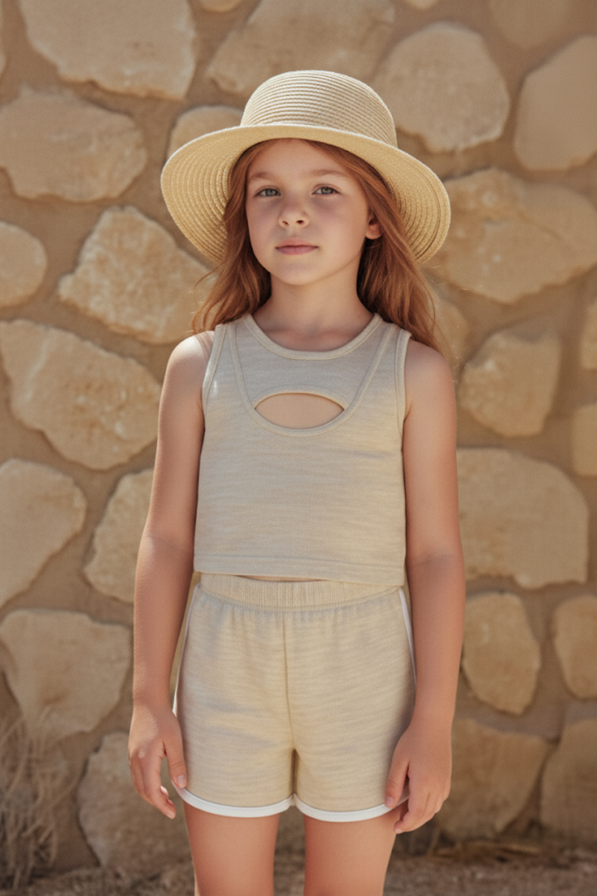 Kız Çocuk Pencere Detaylı Likralı Bluz Şort Takım (2Yaş - 7Yaş)